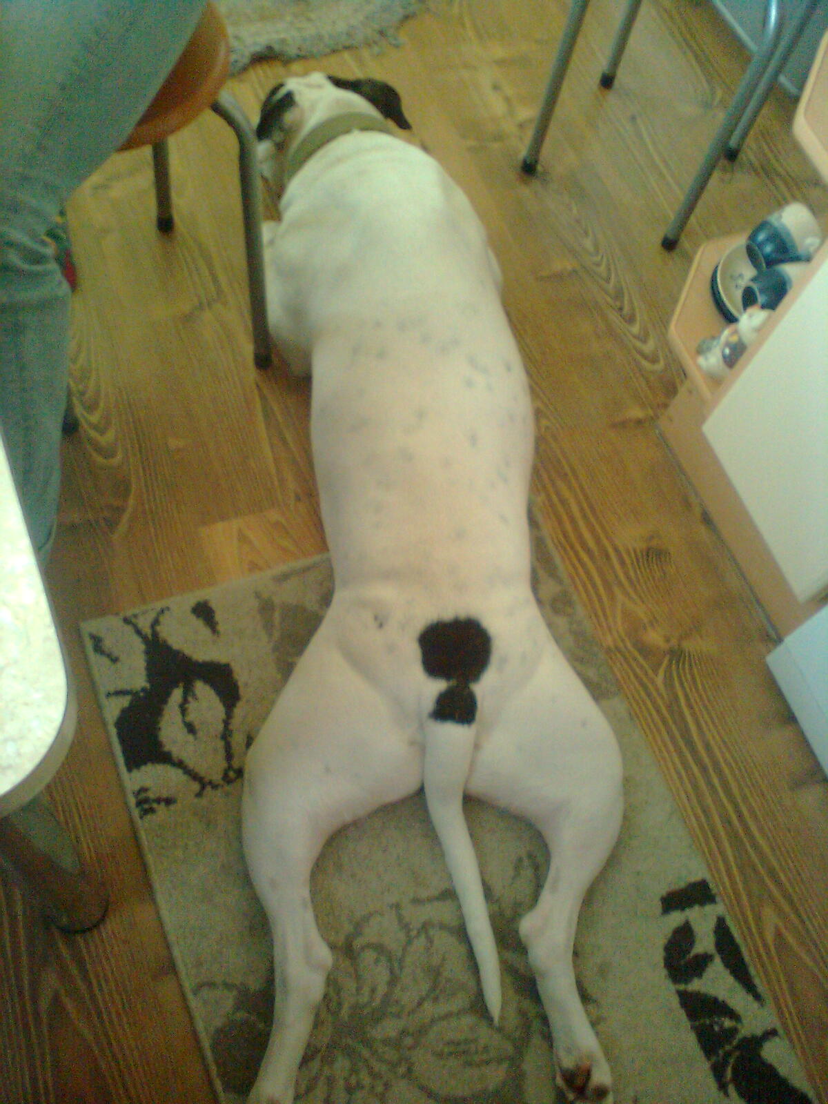 В тот день меня подруга пригласила посмотреть на щеночка, о котором давно мечтала(приобрела), весь вечер мы с ним знакомились...я сидя на табуретке и боясь пошевелиться, а он лёжа рядом и смотря на меня из под бровей:D Фото 26.01.2011 г.