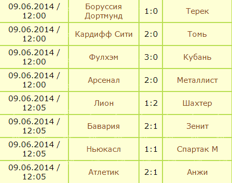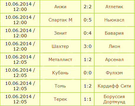 результаты матчей 2 тура
