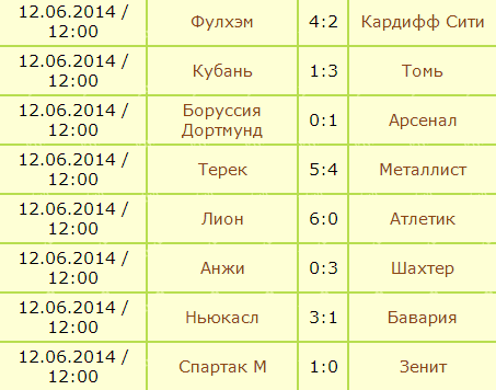 результаты матчей 1 тура