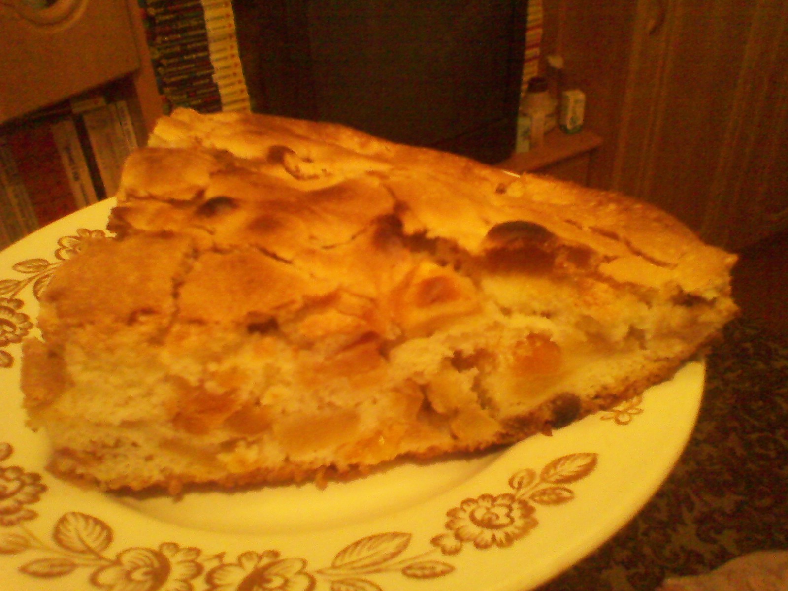 А вот кусочек, в разрезе, качество никакое, но шарлотка с яблоками и курагой.