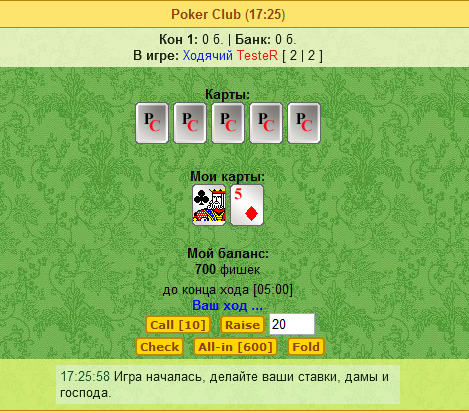 Многопользовательская карточная онлайн игра.В данной игре вы сможете сами создать свой игровой стол в любое удобное для вас время и установит максимальную и минимальную ставку для вашего стола.Количество игроков за столом от 2 и до 10.Так же можно после окончания игры проголосовать за рестарт стола и остаться играть за этим же столом.