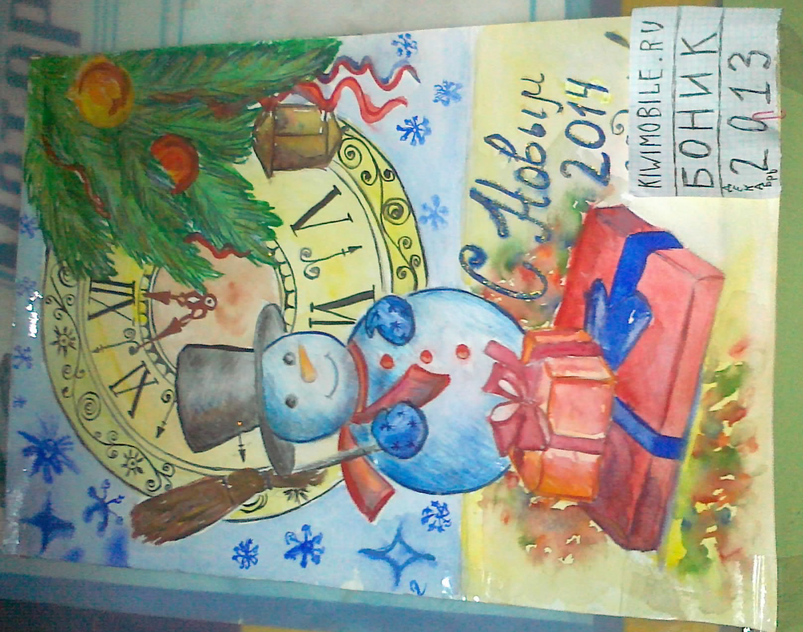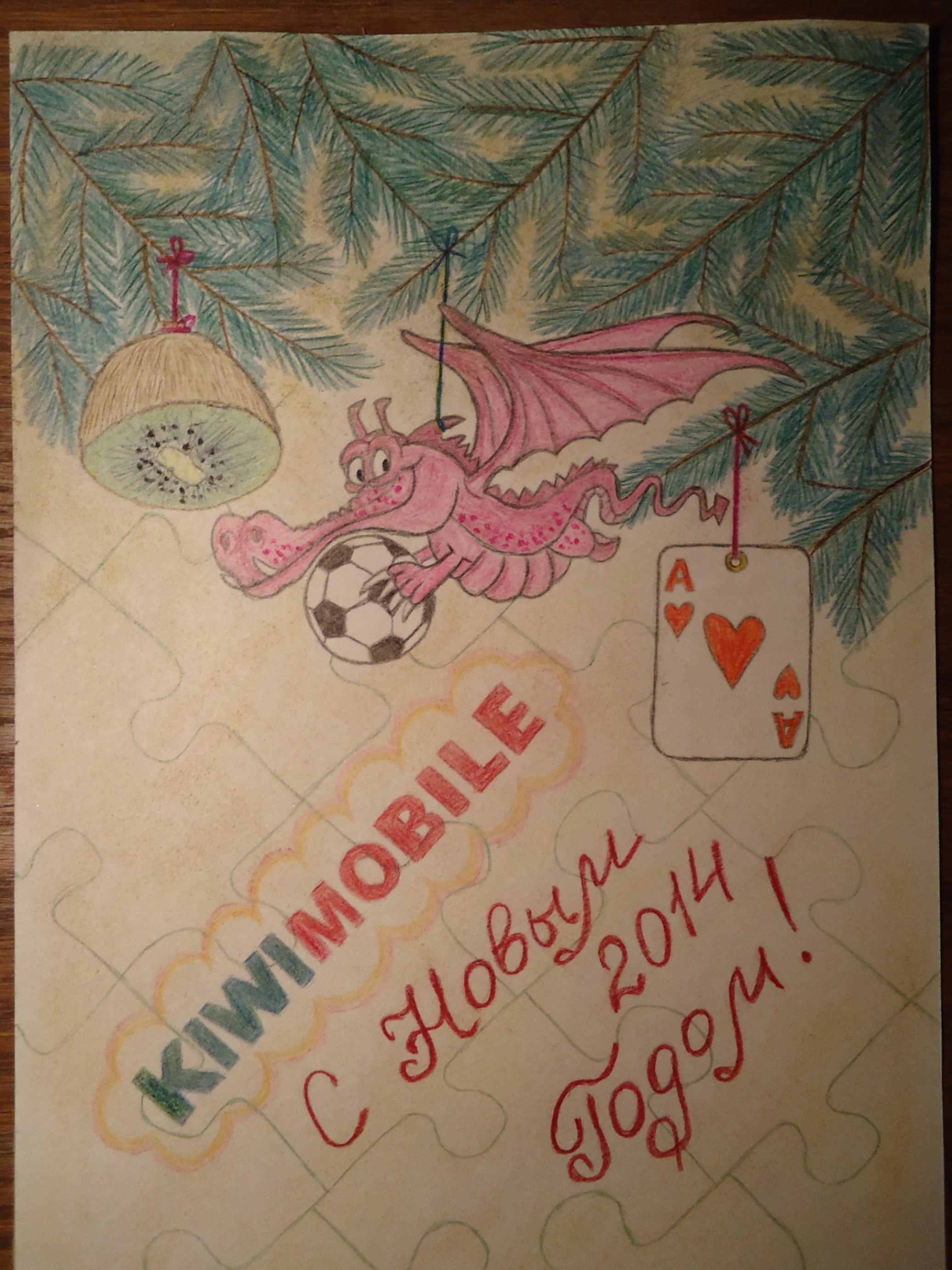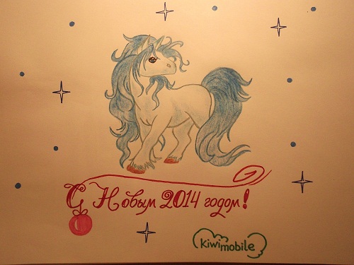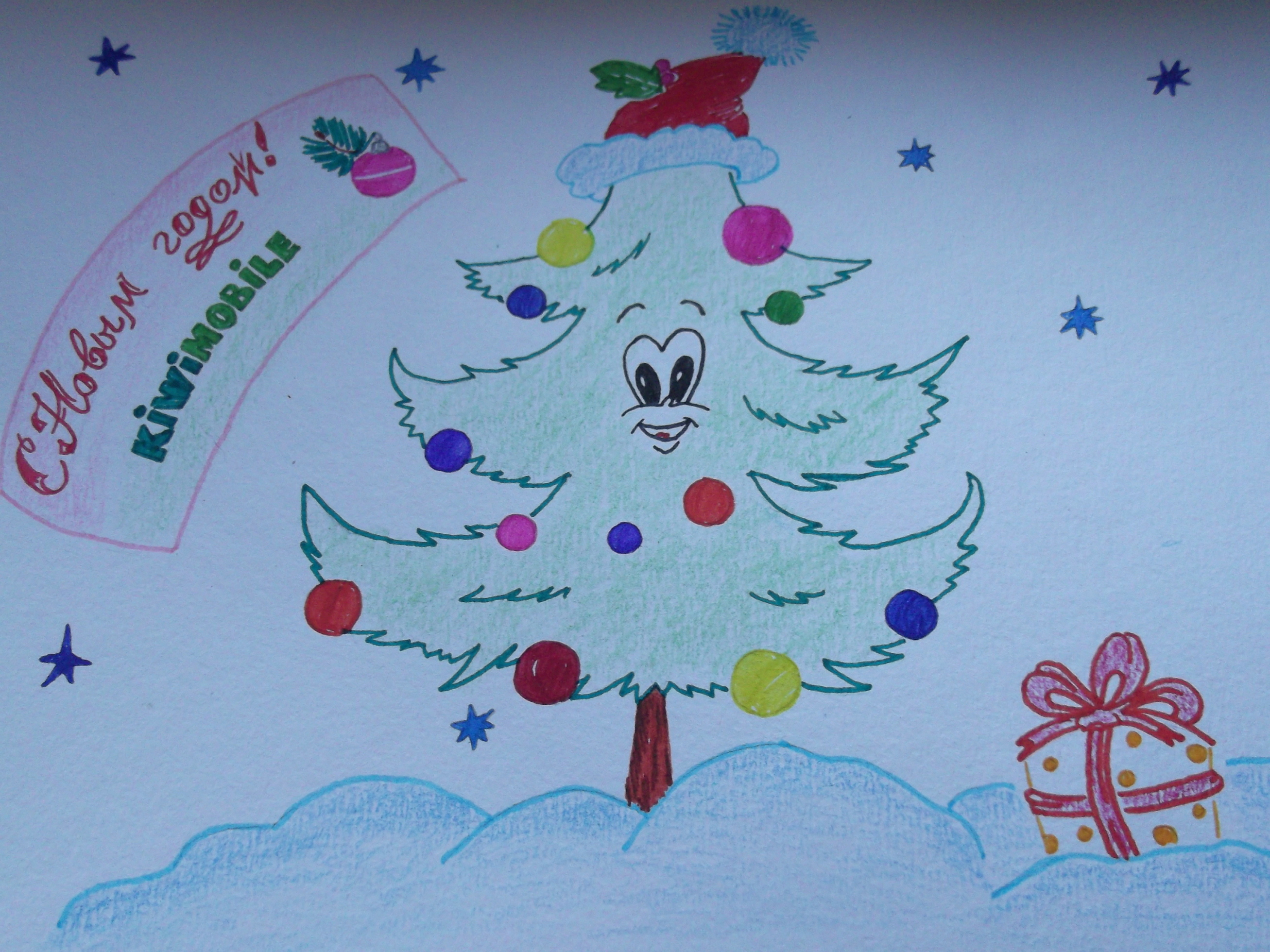 Вам предстоит нарисовать что-то связанное с зимой и Новым годом, карандашами или красками на бумаге! На рисунке должна быть надпись KiwiMobile