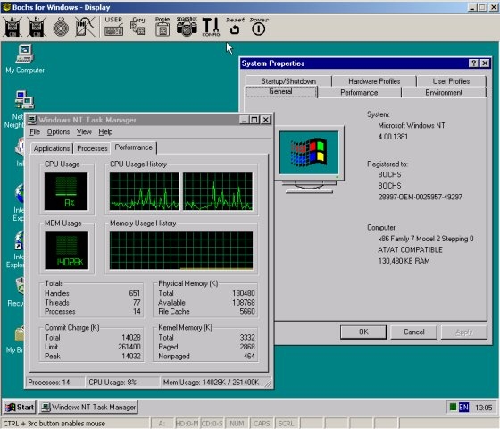 — Bochs эмулирует процессоры: 386, 486, Pentium/PentiumII/PentiumIII/Pentium4 или x86-64 включая...