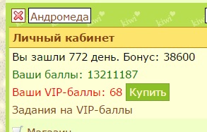 Андромеда, К тебе никаких претензий. Если я зарабатывал Випы, а ты- не хотела, это- твои заботы