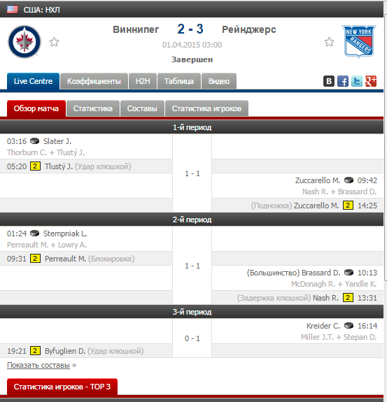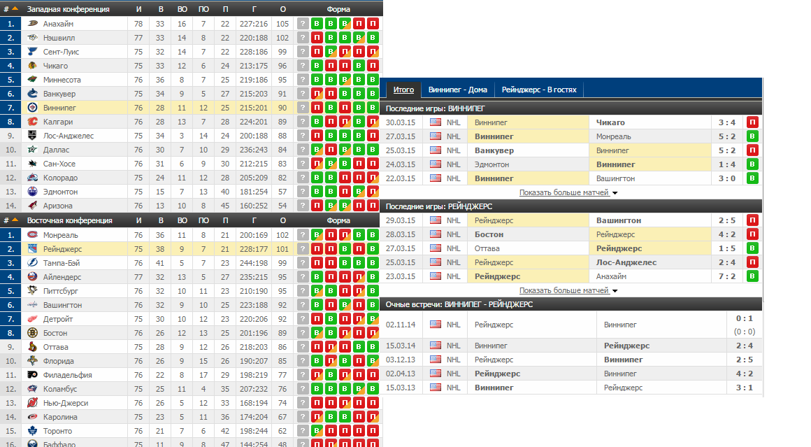 1.04.2015 Будет Сыгран матч, регулярного чемпионата NHL, между командами Виннипег и Рейнджерс!