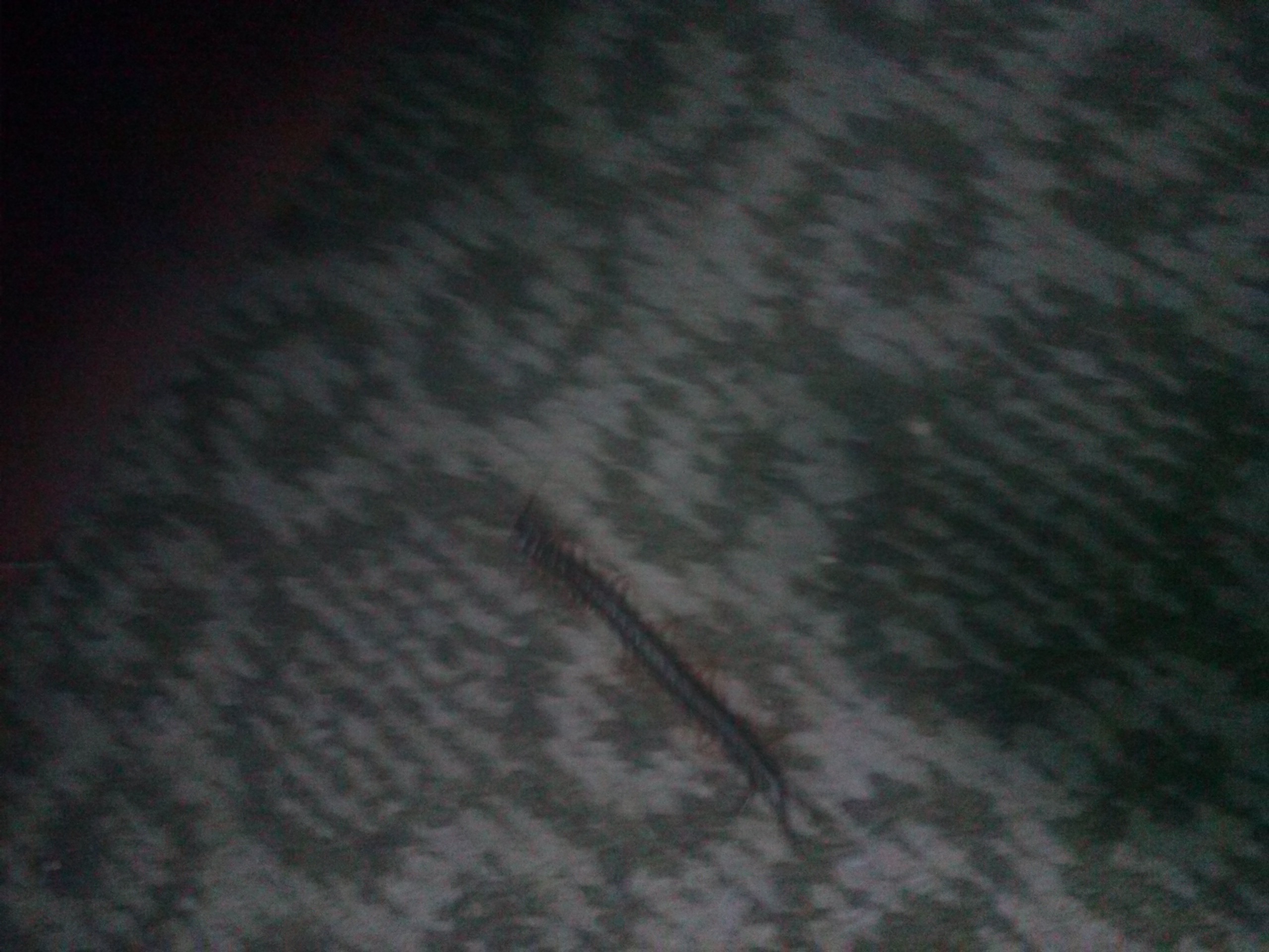 Скалопендра,извените линейки под рукой не было(см 10 наверное,меньше вроде не бывает),пока пытался сфоткать залезла под кровать...блин не успел убить(((всю ночь теперь спать не буду(((блин , чёрт у меня на работе такие ползуют, только помахнатей немного