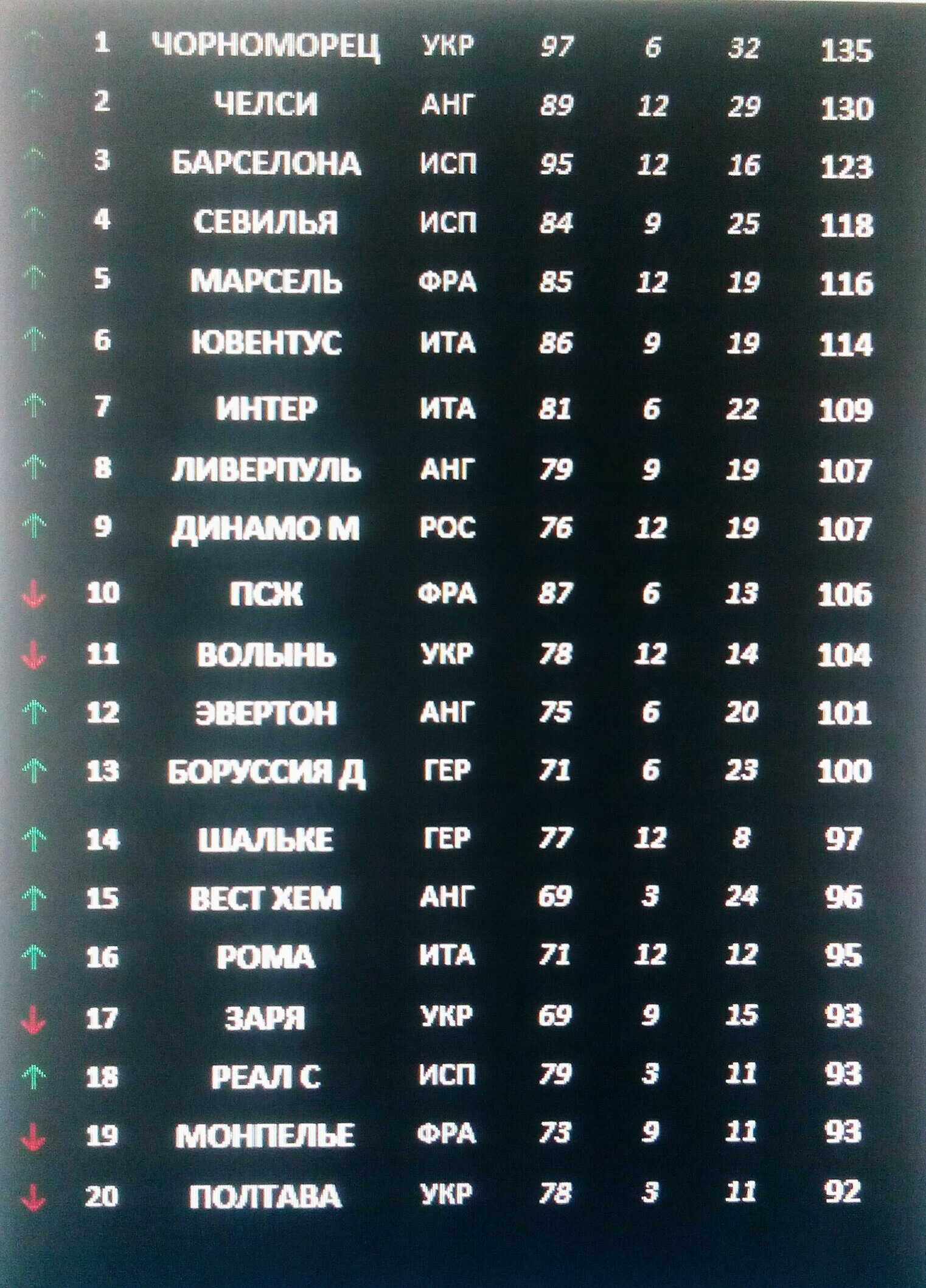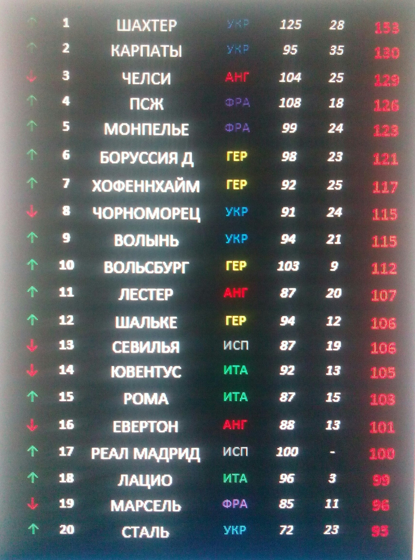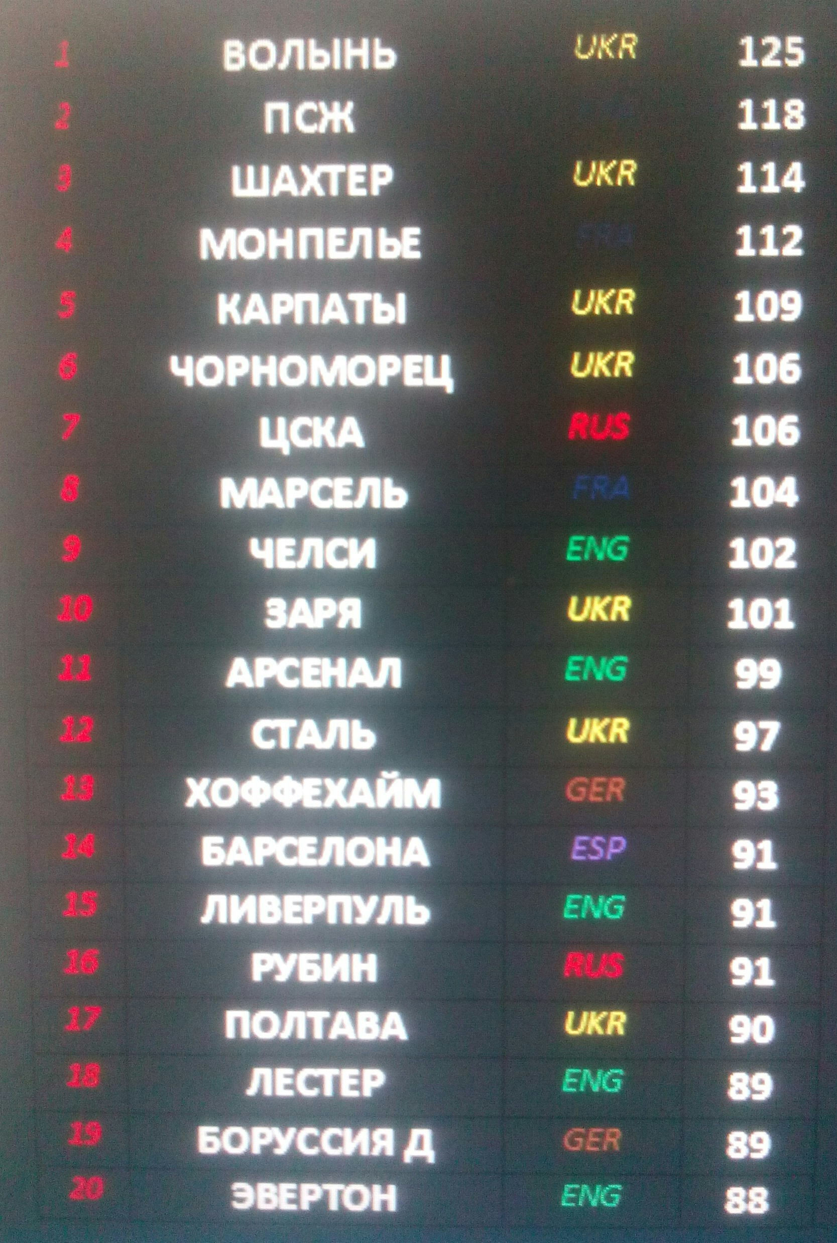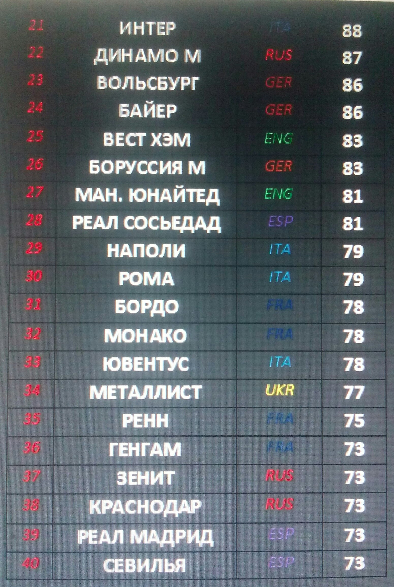 Позиция - Команда - Чемпионат - Очки(чем.-куб.-ЭК) - Рейтинг