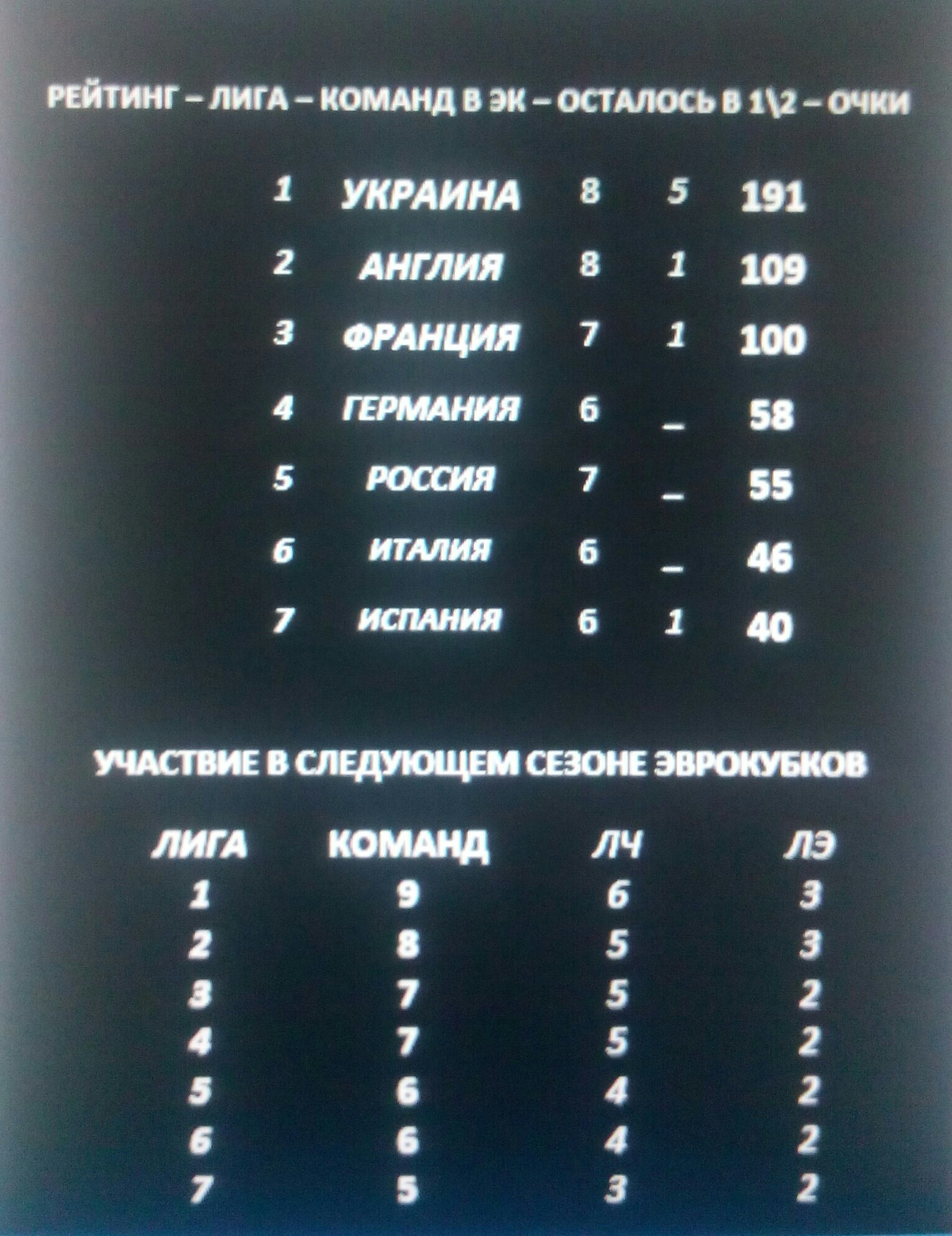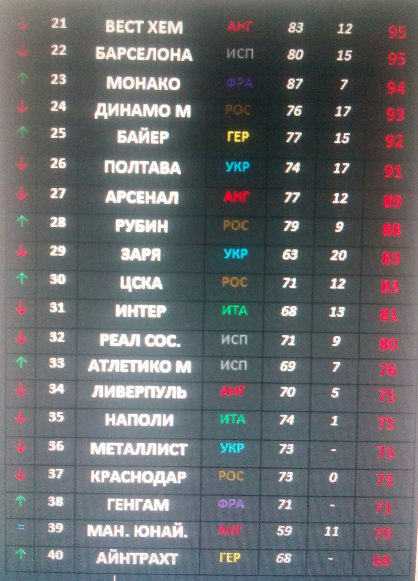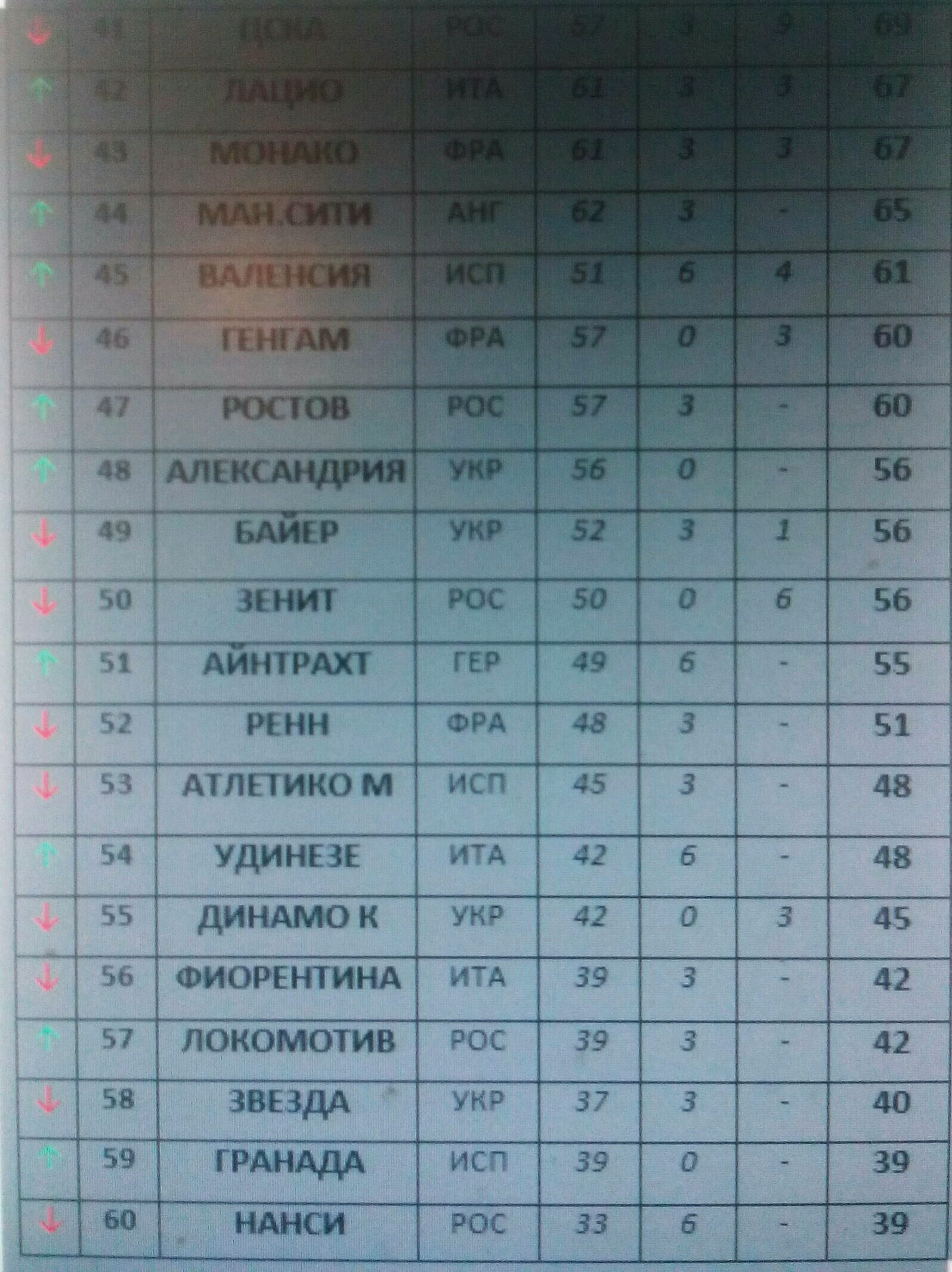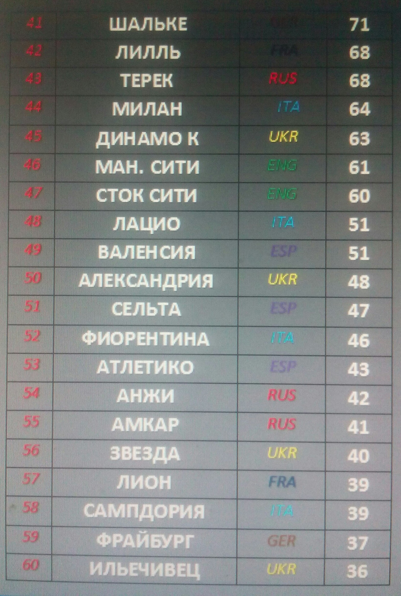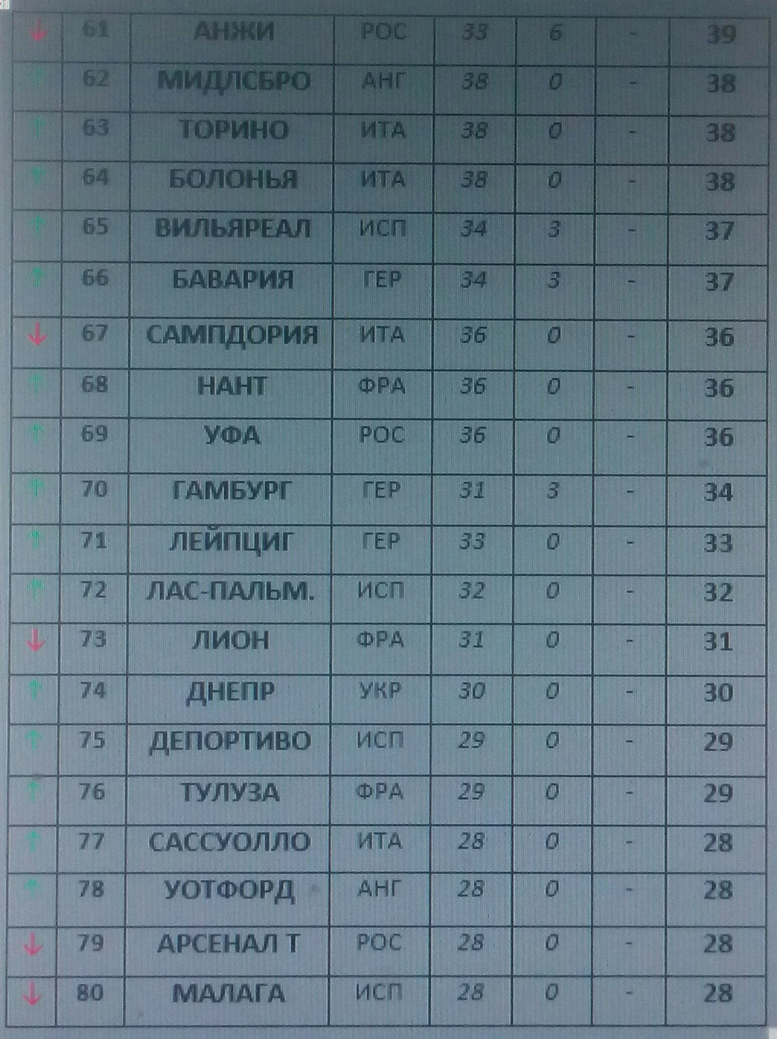 Позиция - Команда - Чемпионат - Очки(чем.-куб.-ЭК) - Рейтинг