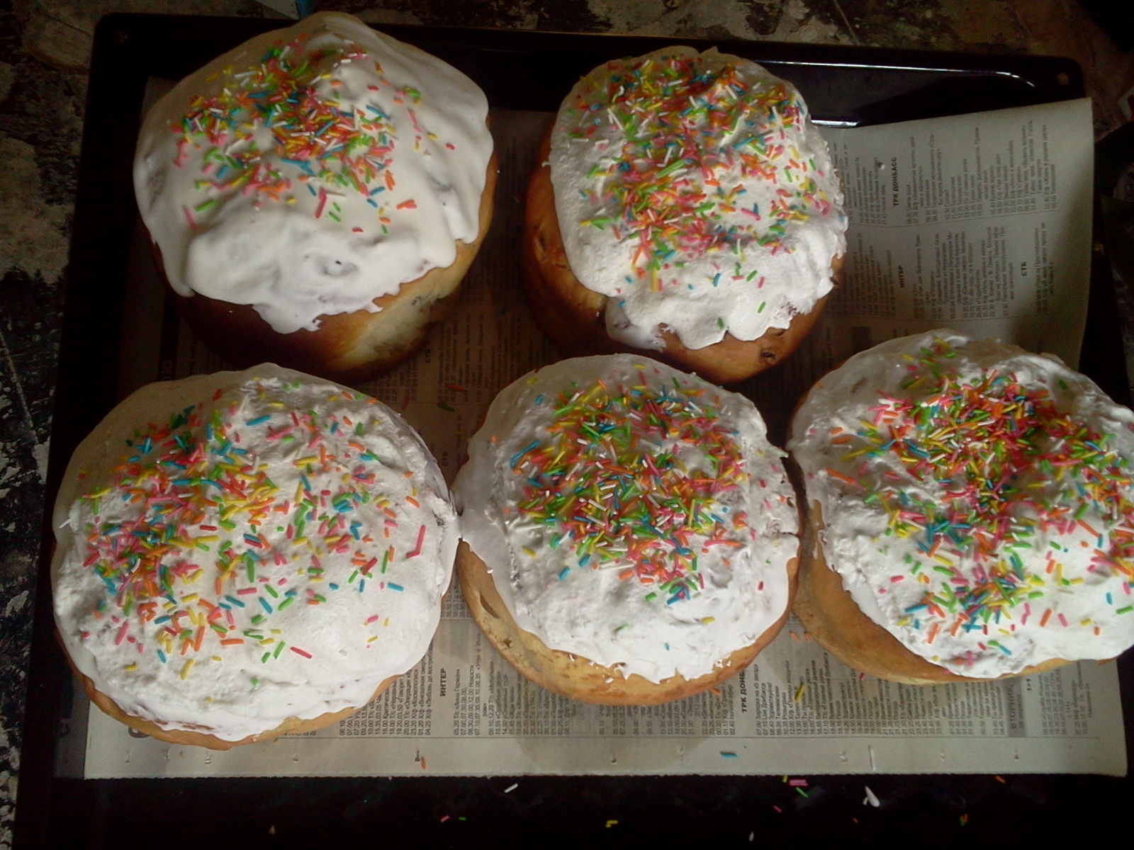 На 2 кг муки 1 пачка дрожжей (100 грамм), 200-250 гр 20-25% сметаны, 1 литр молока (3,2%), 3 стакана сахара, 5 яиц, 250 гр сливочного масла (72,5%), 120 гр изюма, ванильный сахар, соль по вкусу.